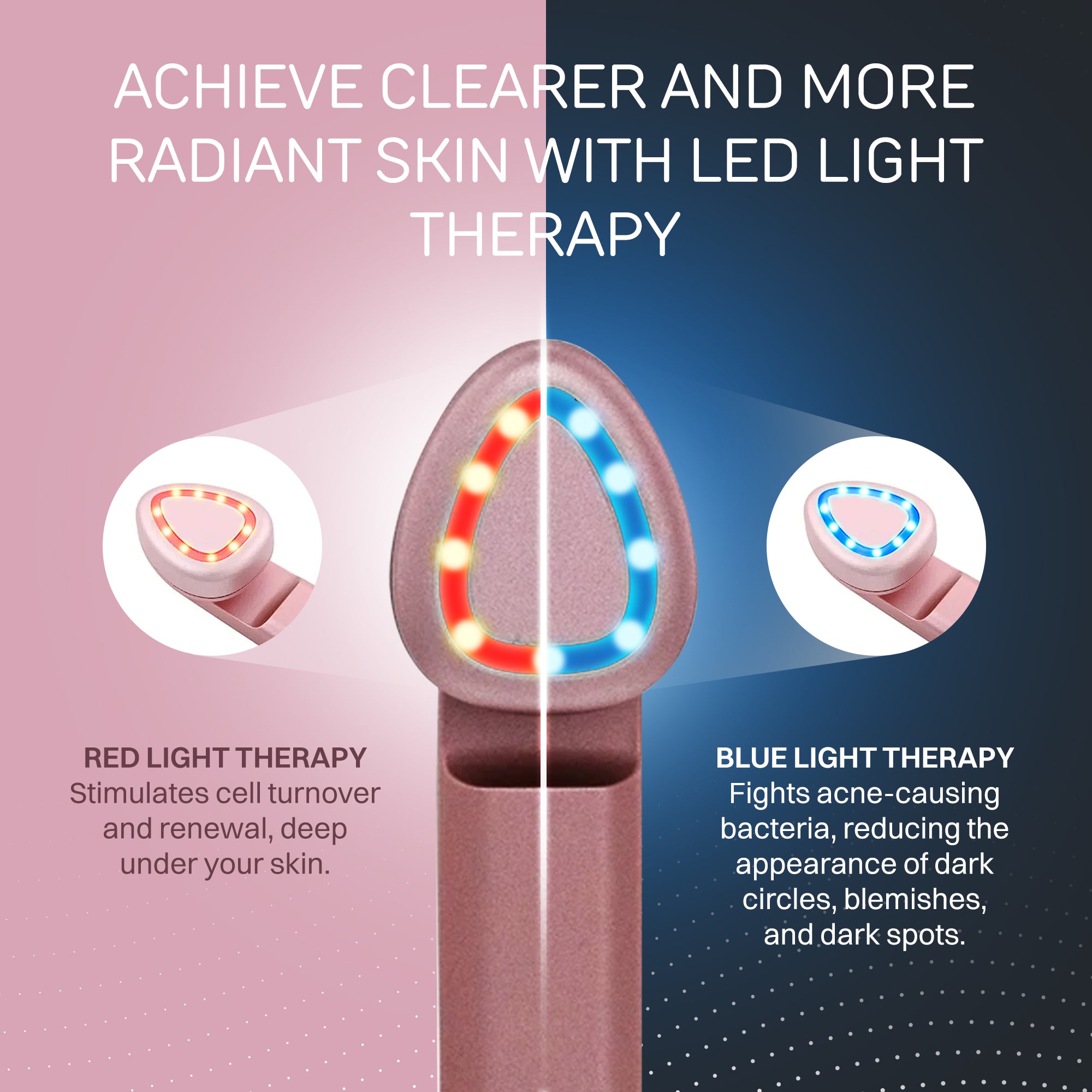 - Blue Light: Targets acne-causing bacteria to reduce blemishes, dark spots, and dark circles.